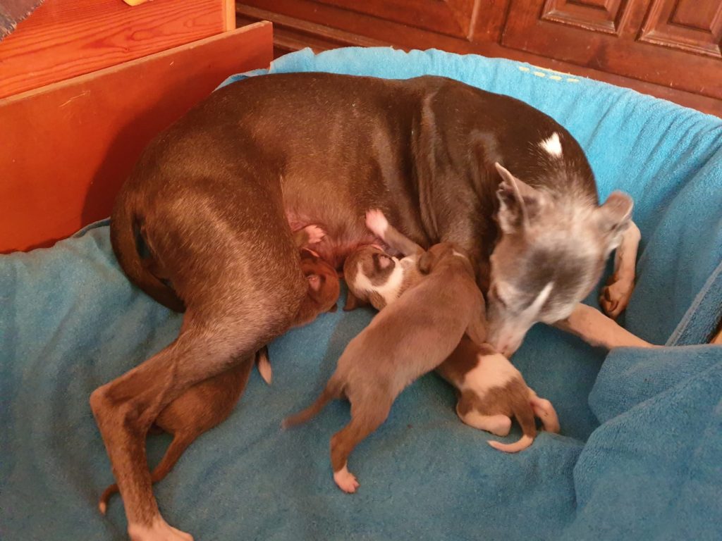Elle a de suite adopté les bébés de Beauty et s’en occupe nuit et jour. Le lait est monté et elle les nourri entièrement!